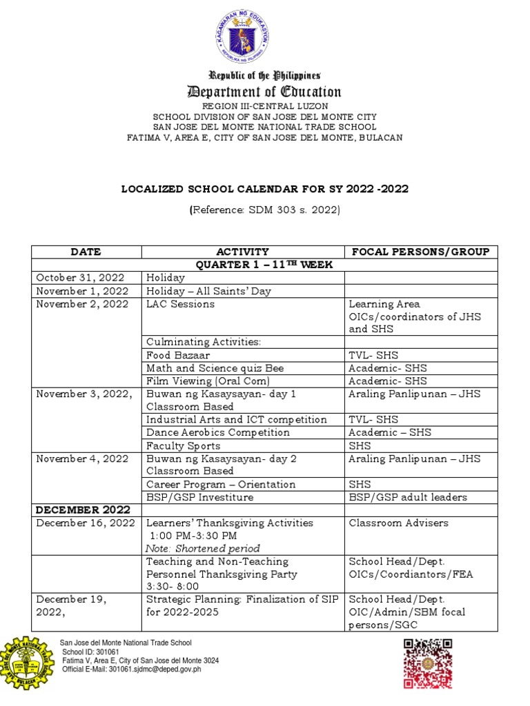 Schools will be closed from Nov 4th to Nov 12th Rev Dr Ercel F