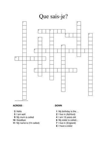 Qu sais je? Basics crossword in French Teaching Resources