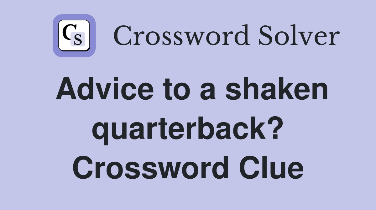 Advice to a shaken quarterback? Crossword Clue Answers Crossword Solver