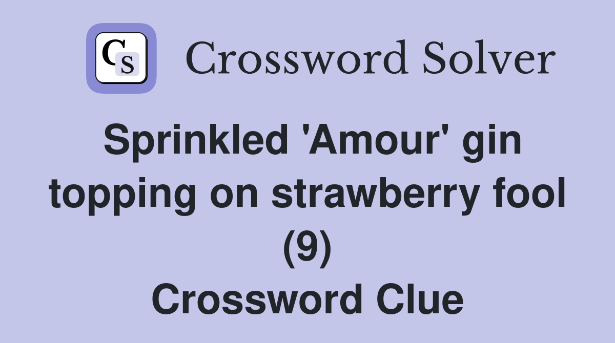 Sprinkled Amour gin topping on strawberry fool (9) Crossword Clue