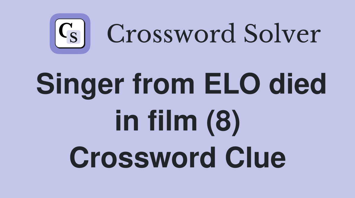 Singer from ELO died in film (8) Crossword Clue Answers Crossword