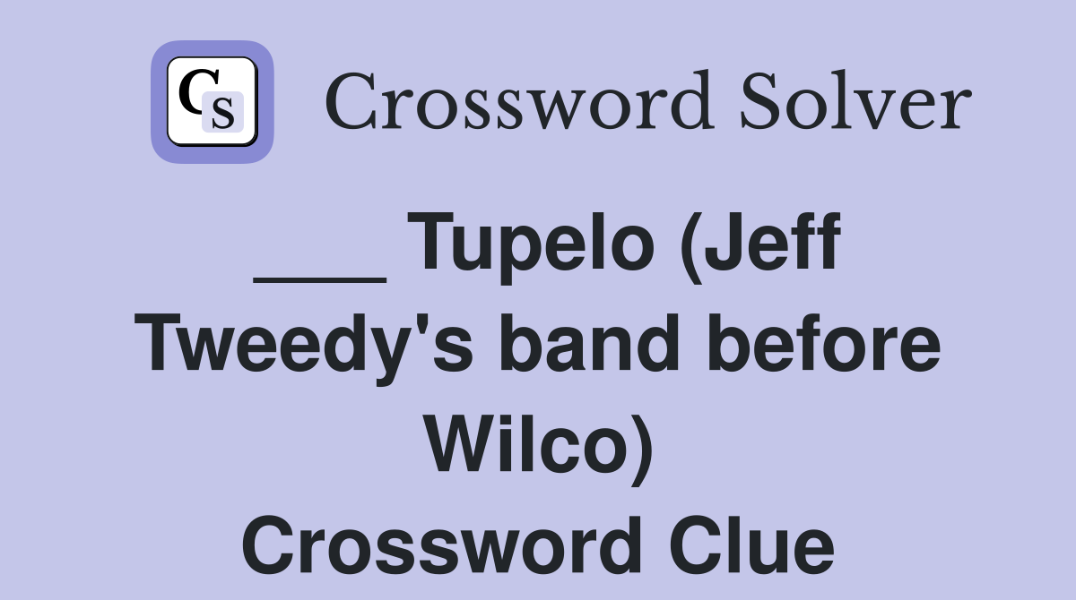 Tupelo (Jeff Tweedy s band before Wilco) Crossword Clue Answers