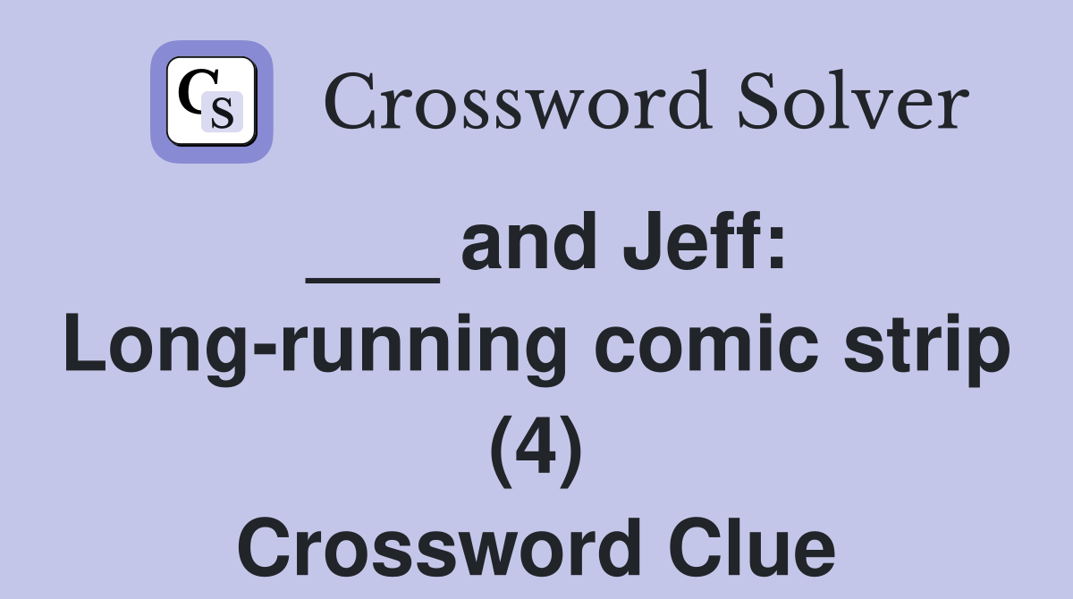 and Jeff: Long running comic strip (4) Crossword Clue Answers