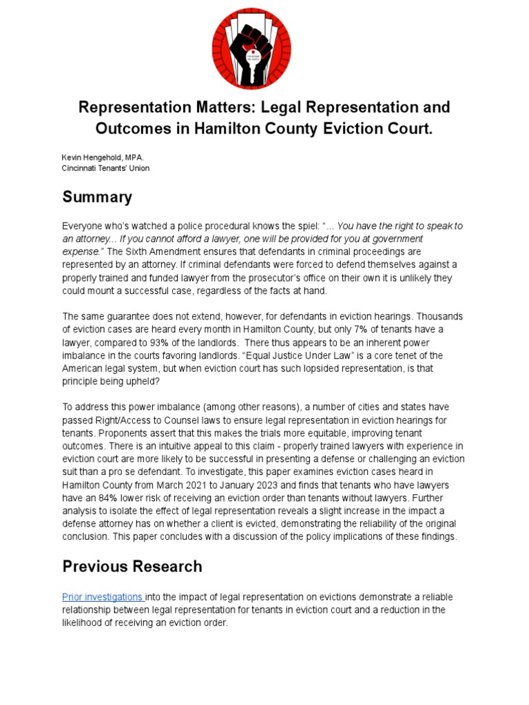 Cincinnati Tenants #39 Union: Legal Representation and Outcomes in