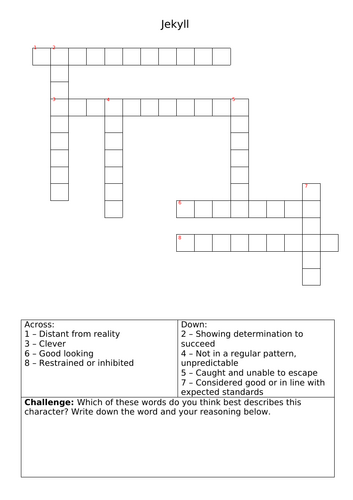 Jekyll and Hyde Crossword Teaching Resources