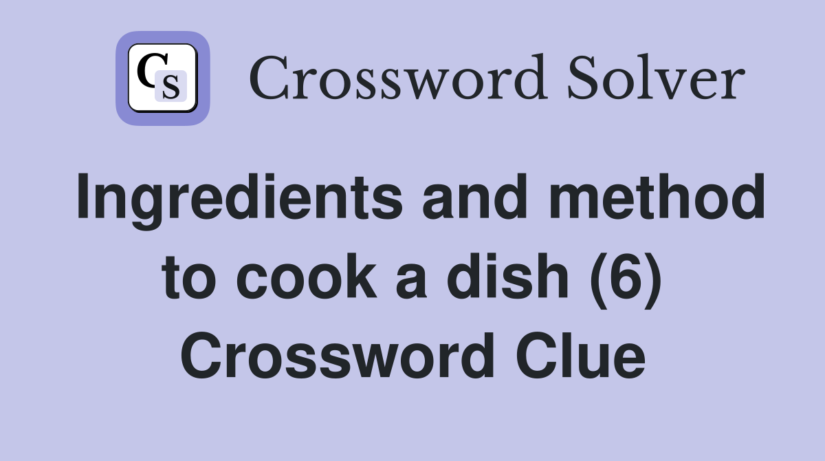 Ingredients and method to cook a dish (6) Crossword Clue Answers