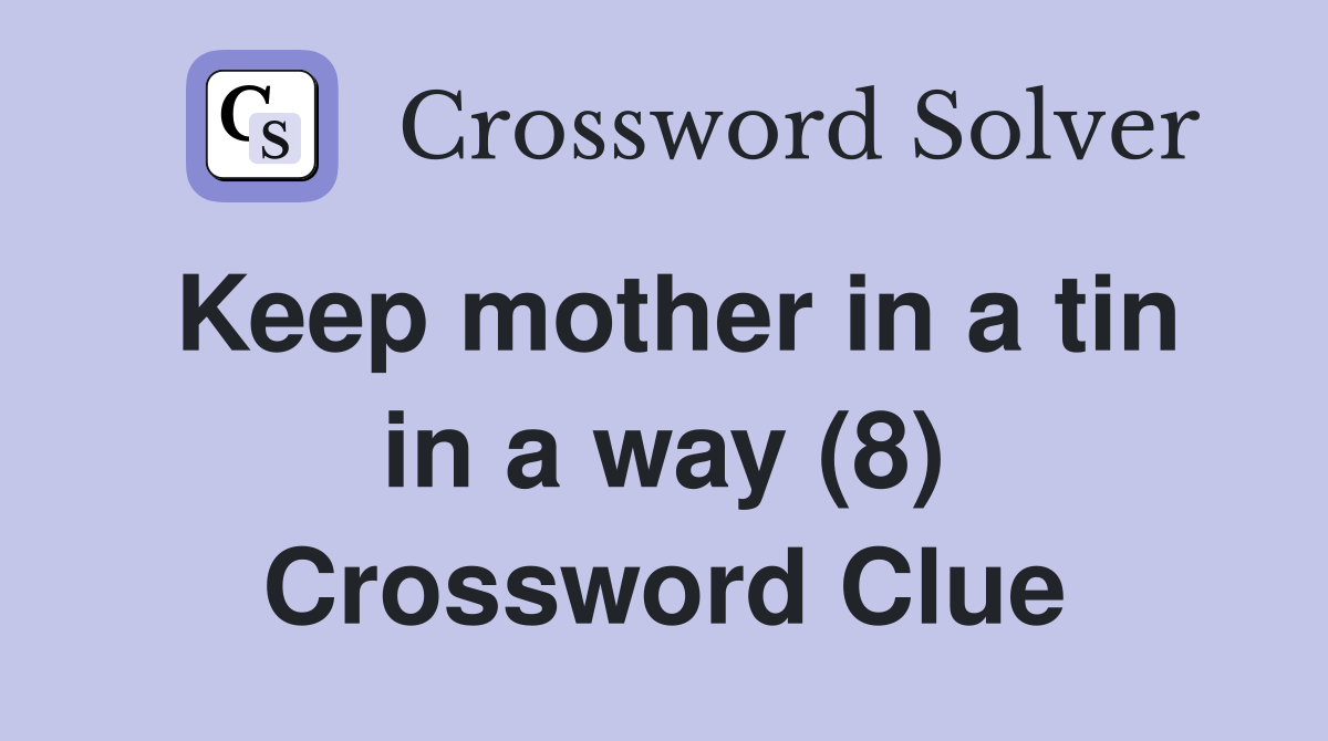 Keep mother in a tin in a way (8) Crossword Clue Answers Crossword