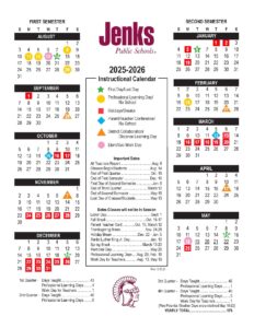Jenks Public Schools Calendar 2025 2026 in PDF