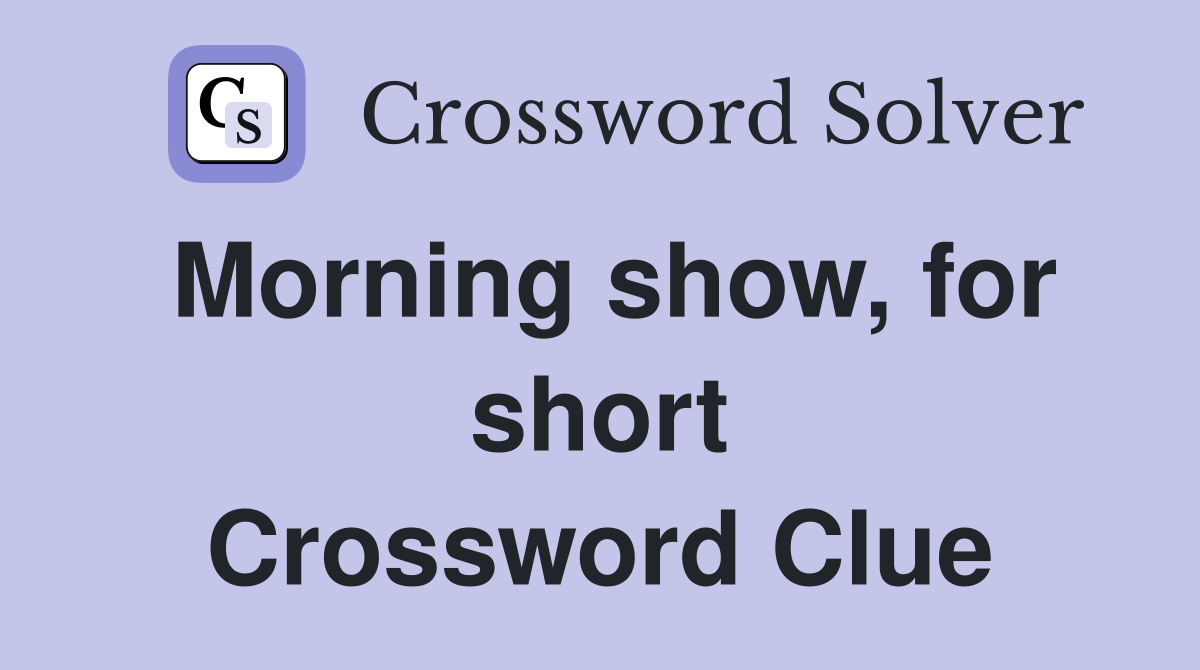 Morning show for short Crossword Clue Answers Crossword Solver