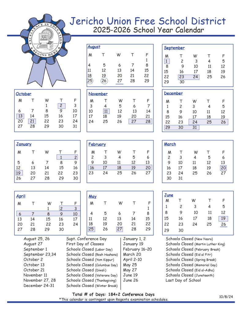Jericho UFSD Calendar 25 26 revised PDF EduCounty