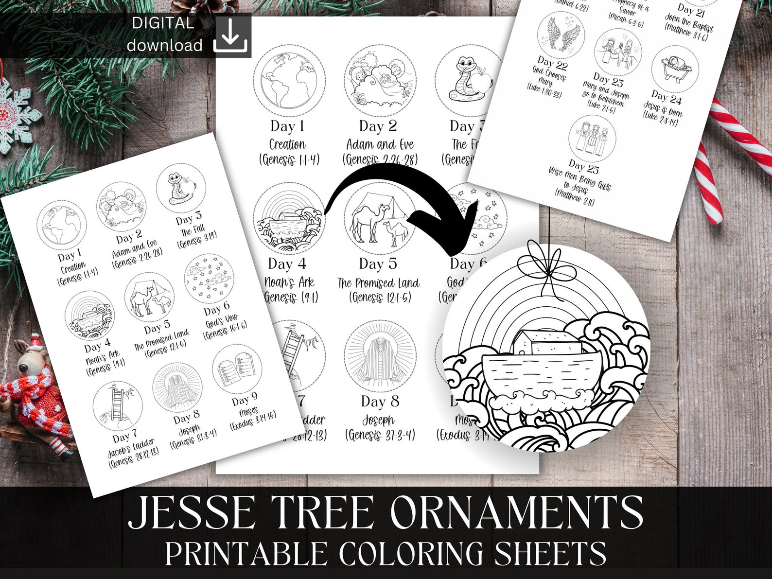 24 Jesse Tree Printable Ornaments PDF Coloring Page Ornaments