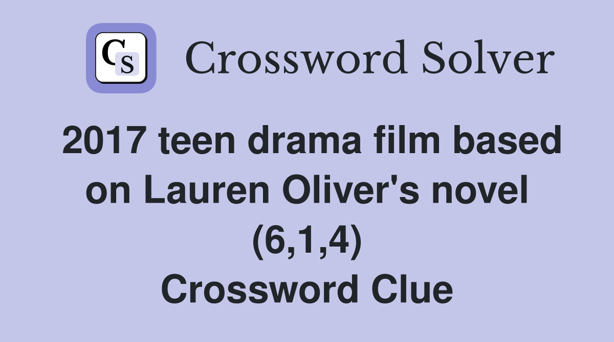 2017 teen drama film based on Lauren Oliver #39 s novel (6 1 4) Crossword