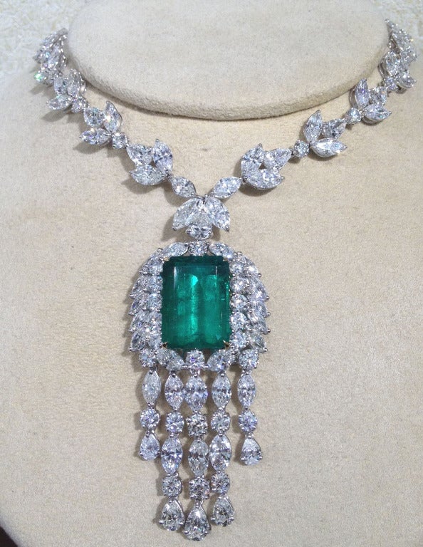 Rare 20 98 carat GIA certified Colombian Emerald and Diamond Necklace