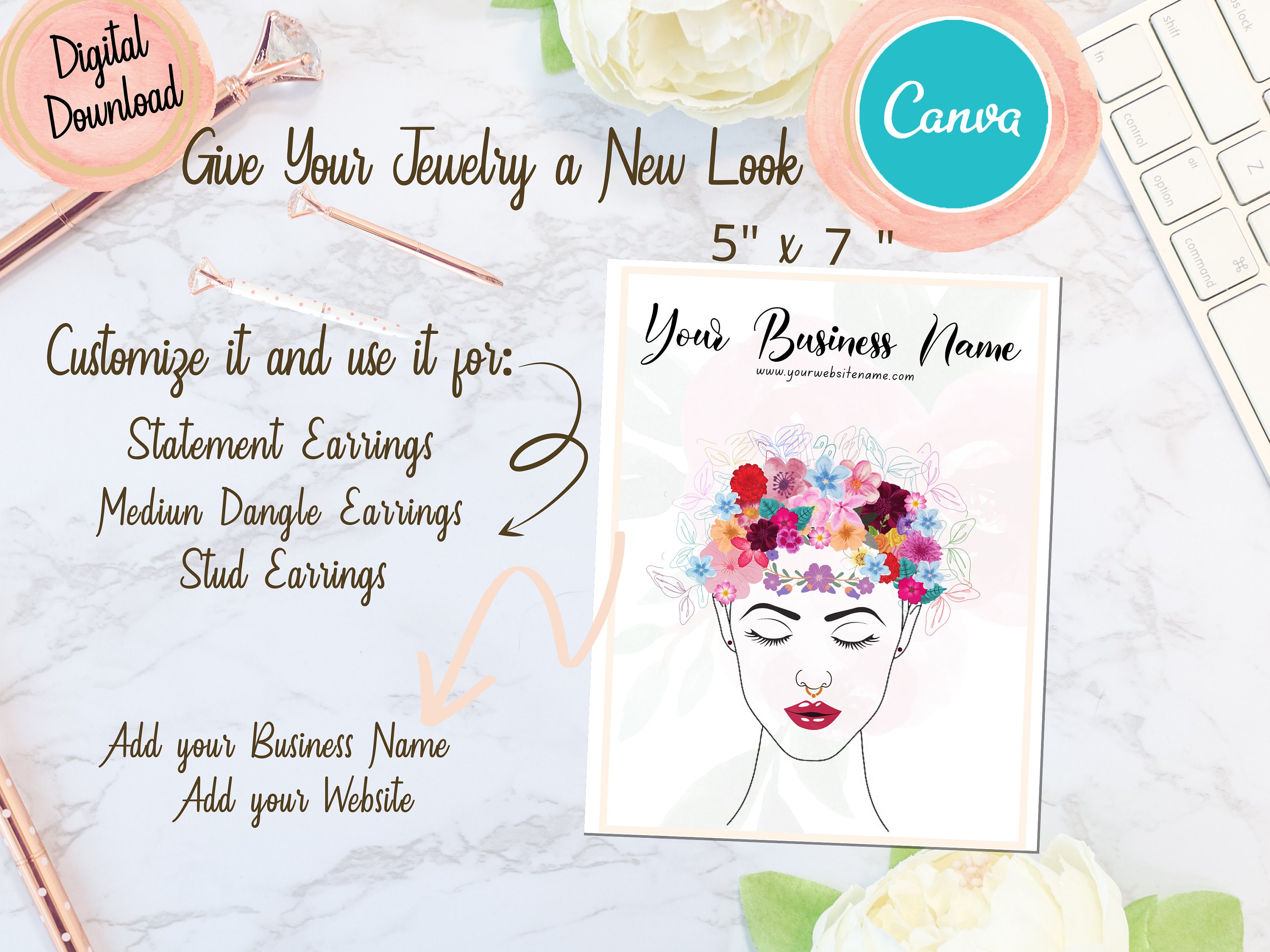 Editable Earring Card Template Jewelry Display Card Printable Custom