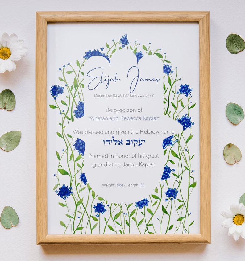 Jewish Baby Gift Jewish Baby Naming Certificate Jewish Baby