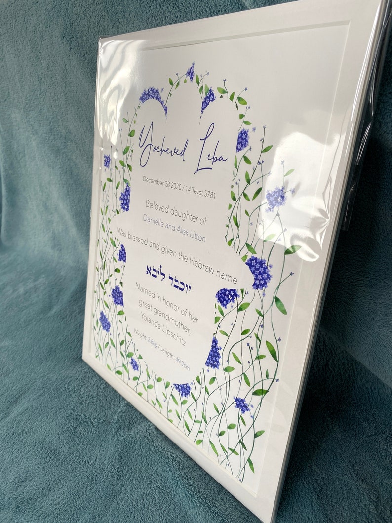 Jewish Baby Naming Certificate lavender Forget me not Fine art Print