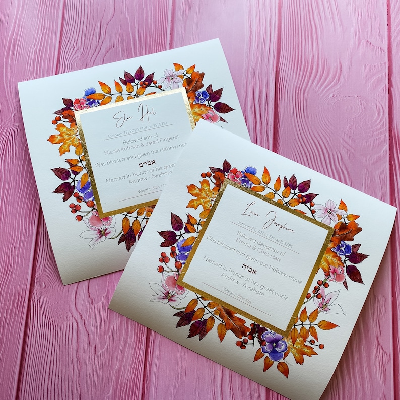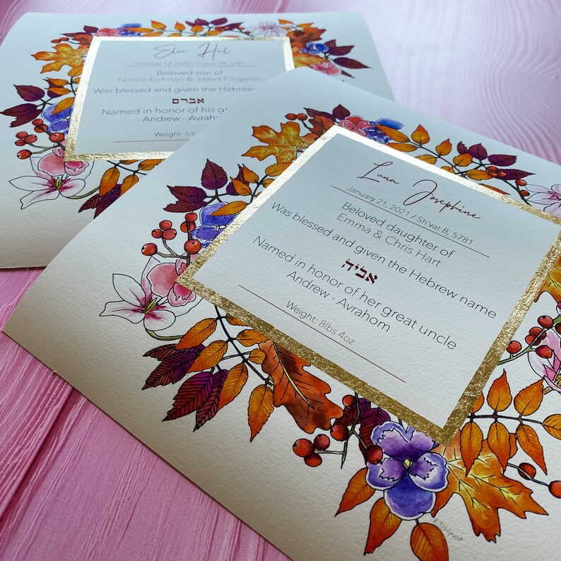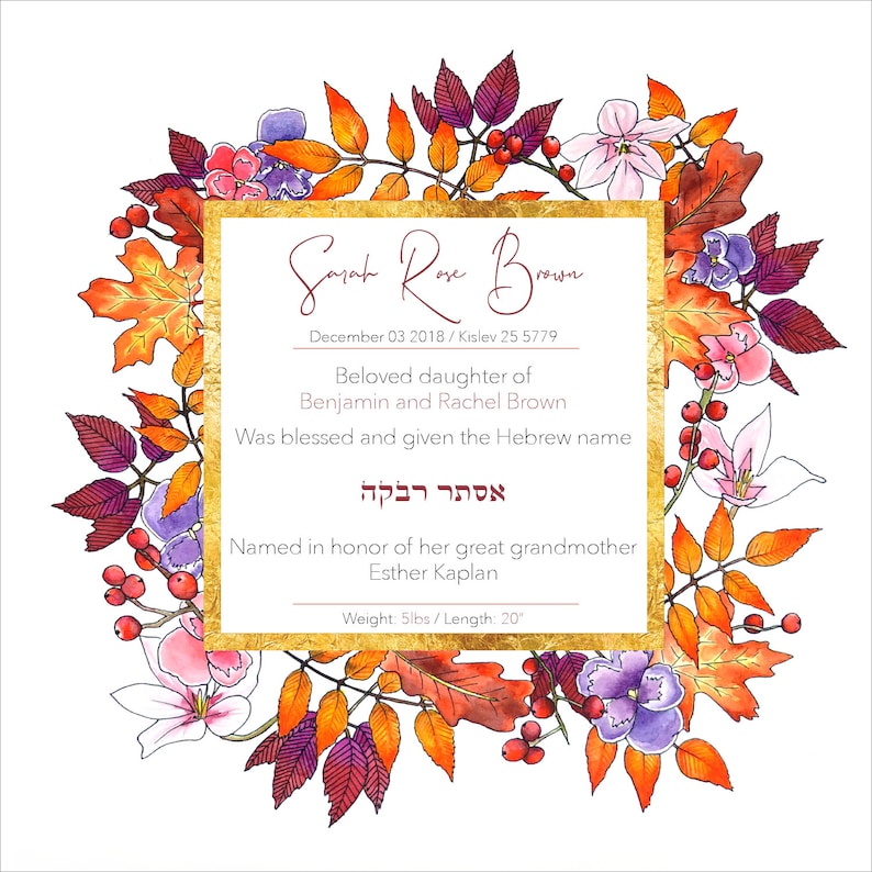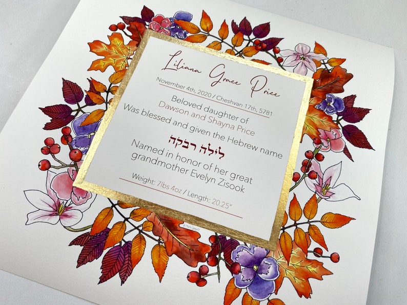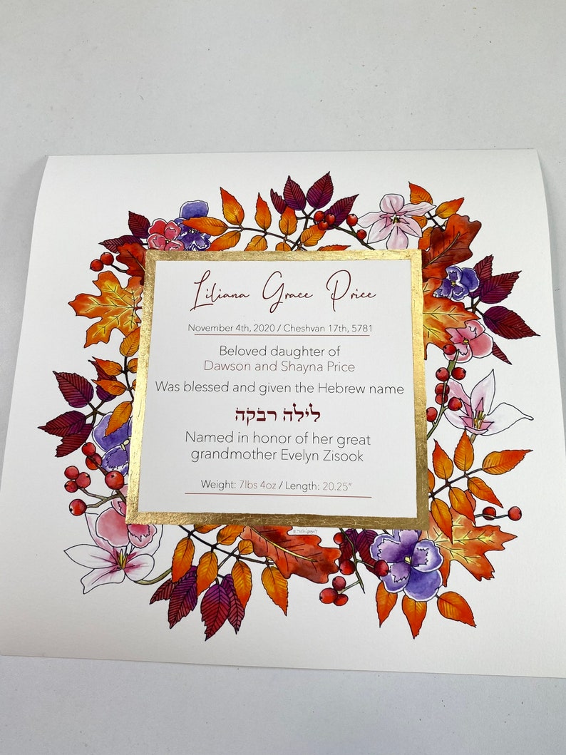Jewish Baby Naming Certificate autumn Fine art Etsy