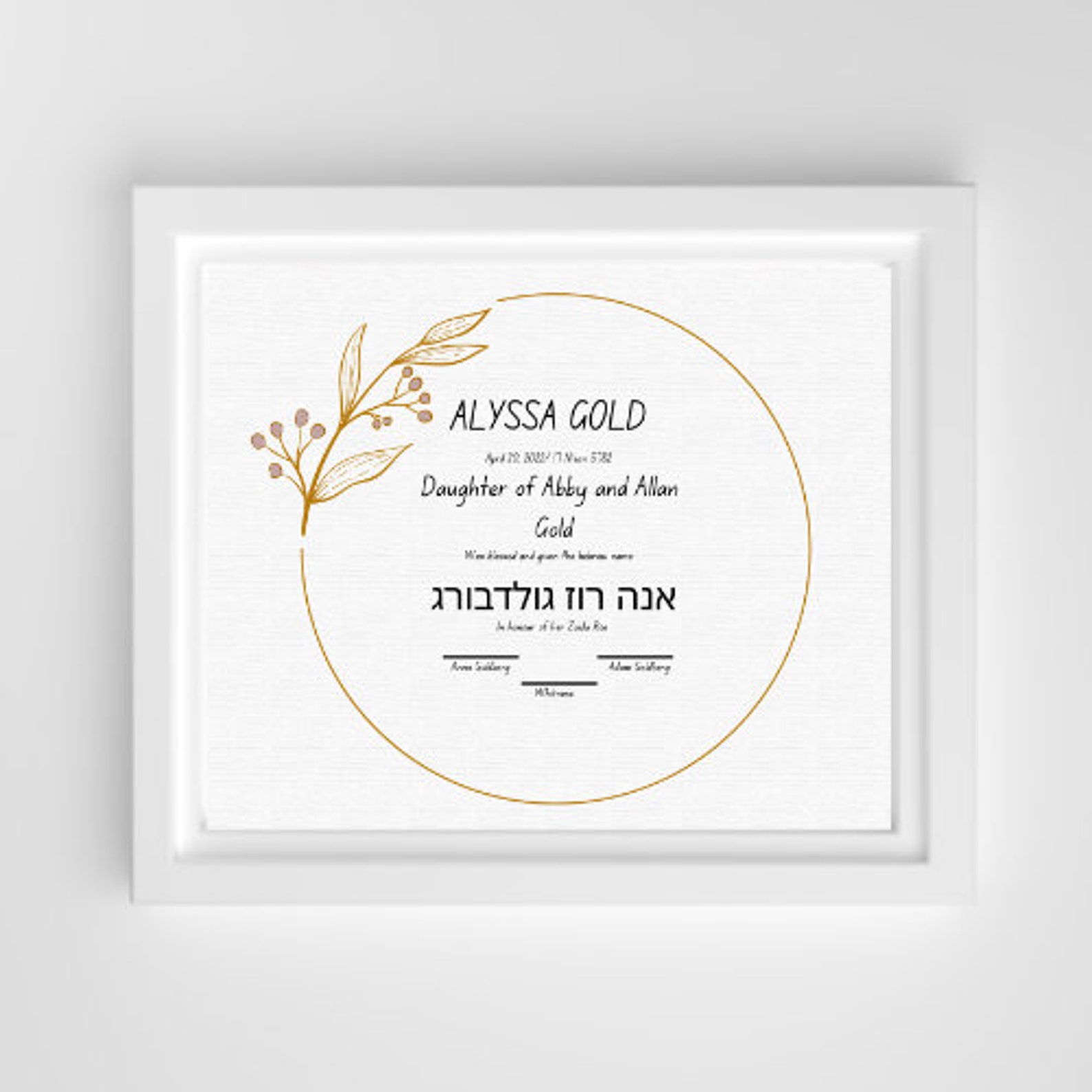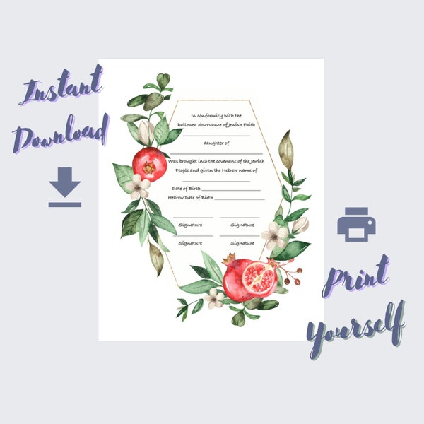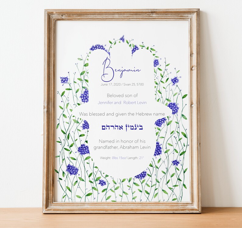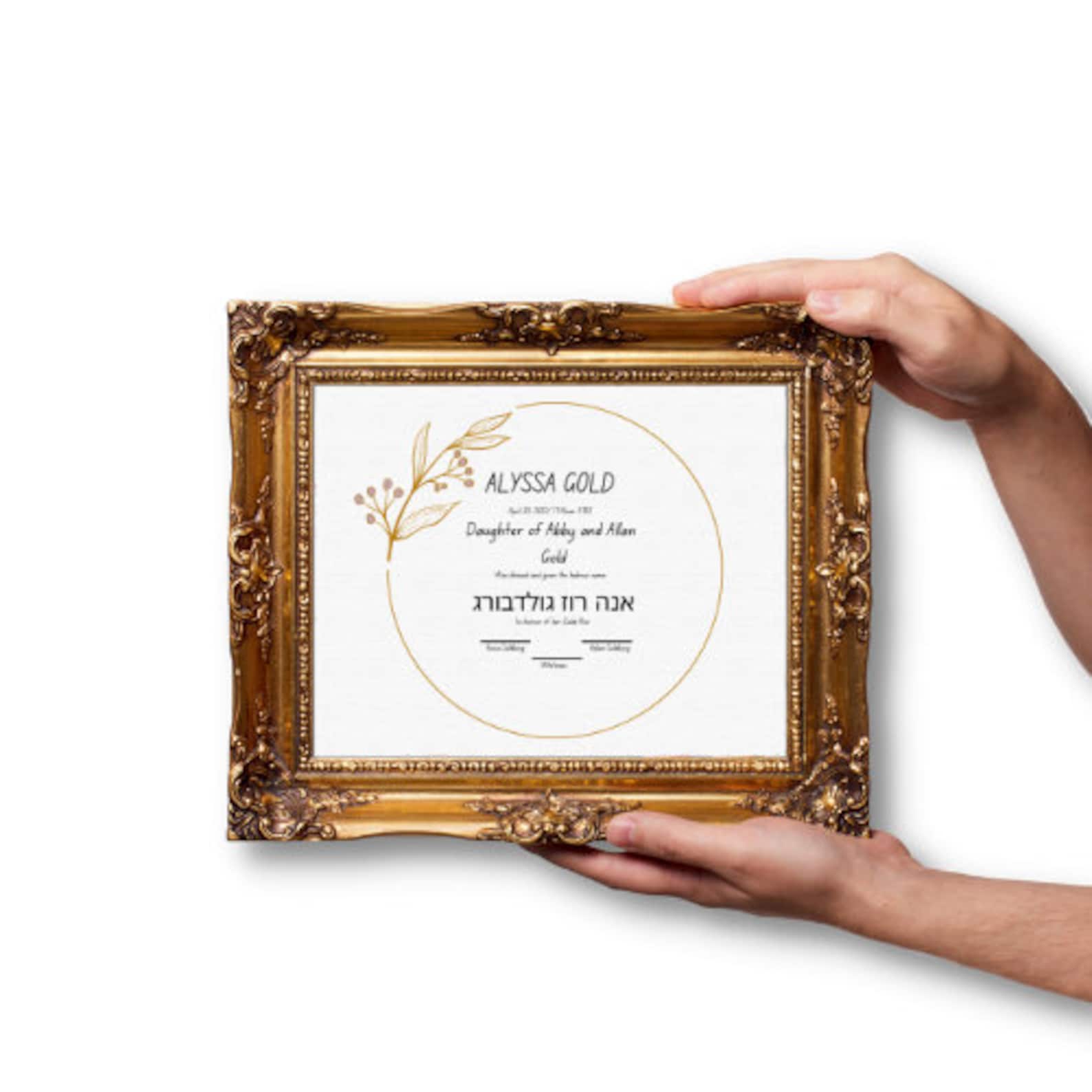 Digital Hebrew Jewish Baby Naming Ceremony Certificate Naming Ceremony