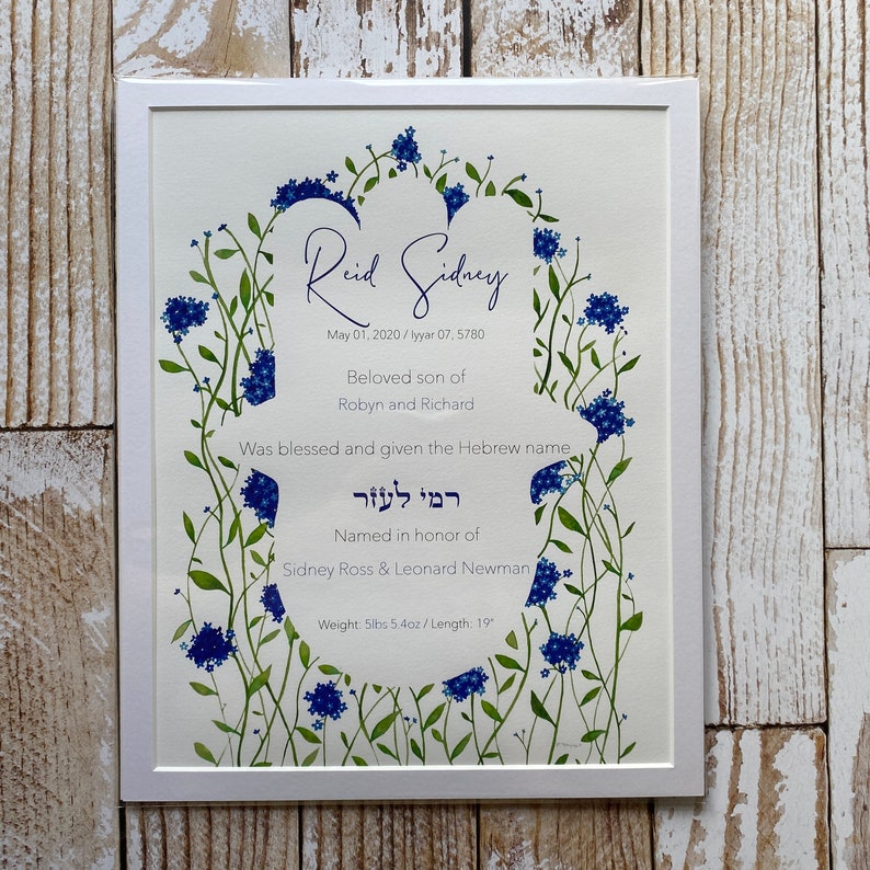 Jewish Baby Naming Certificate brit Milah bris Simchat Bat