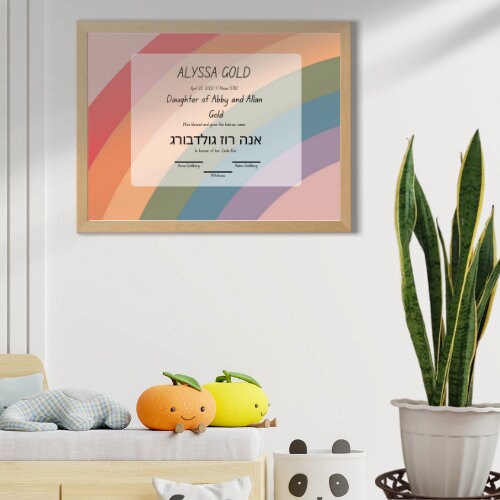Jewish Baby Naming Certificate rainbow Fine art Print Personalized