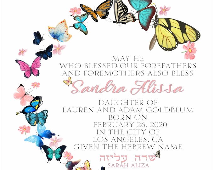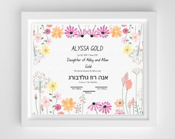 Jewish Baby Naming Certificate Print for Baby Girl for Simchat Bat