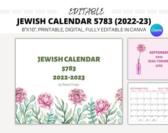 Jewish Calendar Print Out 5783 (2022 2023) Etsy UK