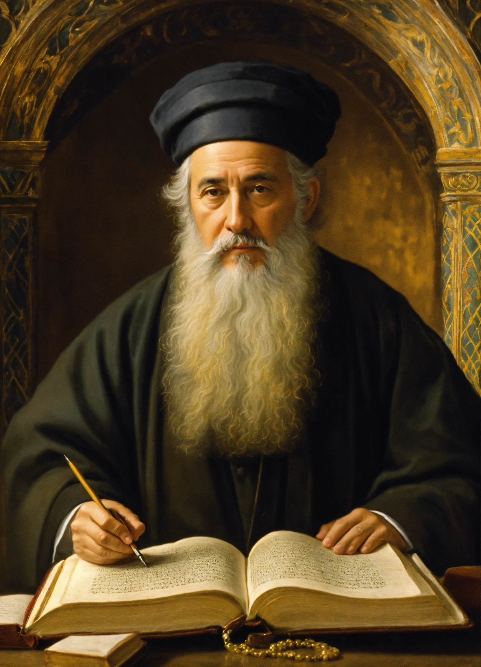 Ilustración de Stock elderly Jewish scholar studying the talmud