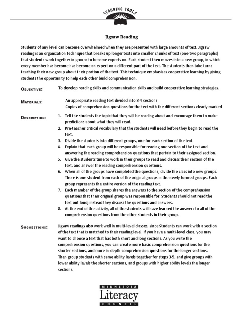 Jigsaw Reading Strategy Worksheet UPD