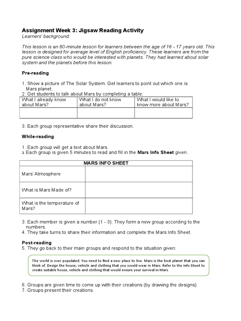 Jigsaw Reading PDF Expert Lesson Plan