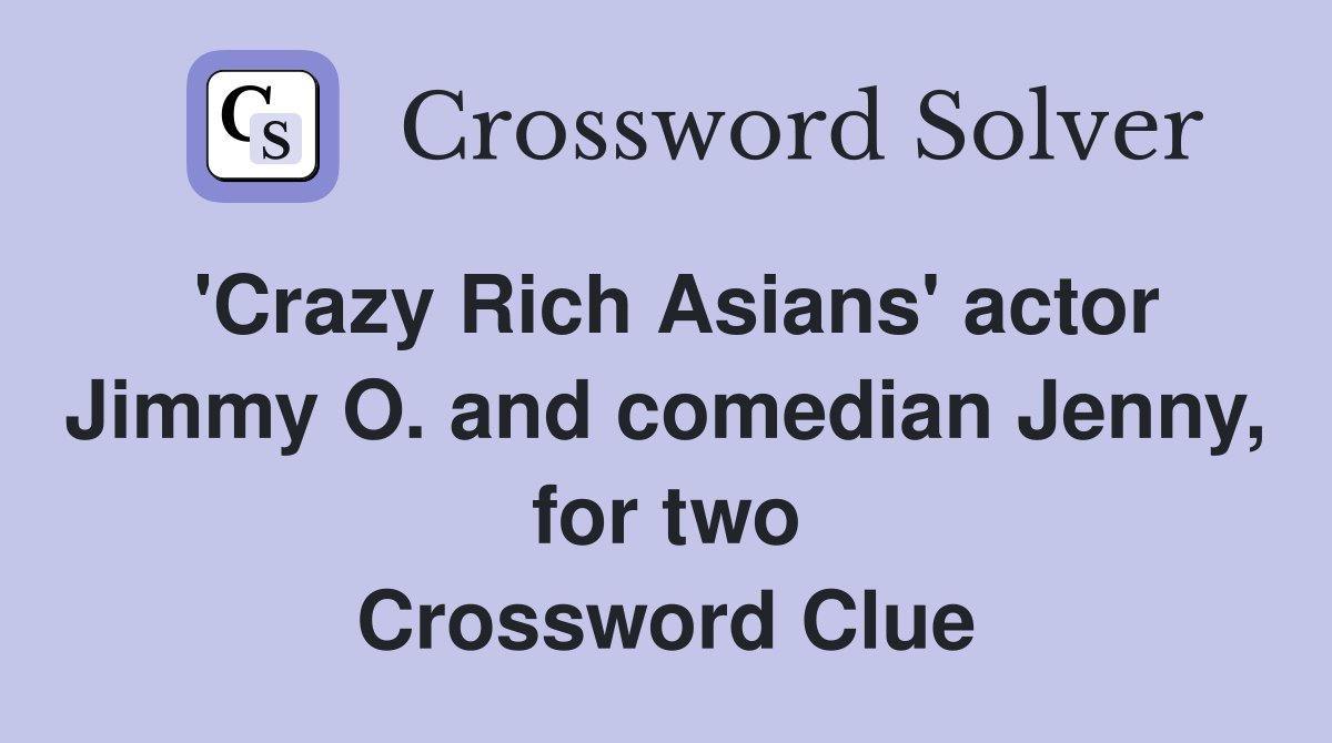 Crazy Rich Asians actor Jimmy O and comedian Jenny for two