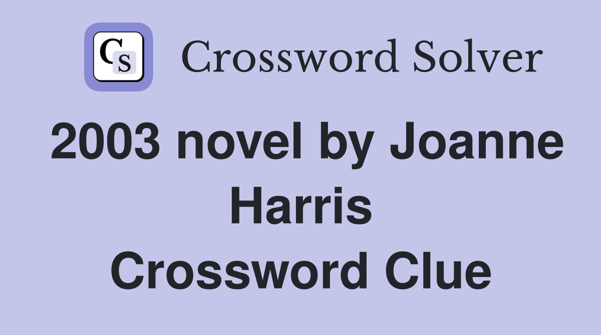 2003 novel by Joanne Harris Crossword Clue Answers Crossword Solver