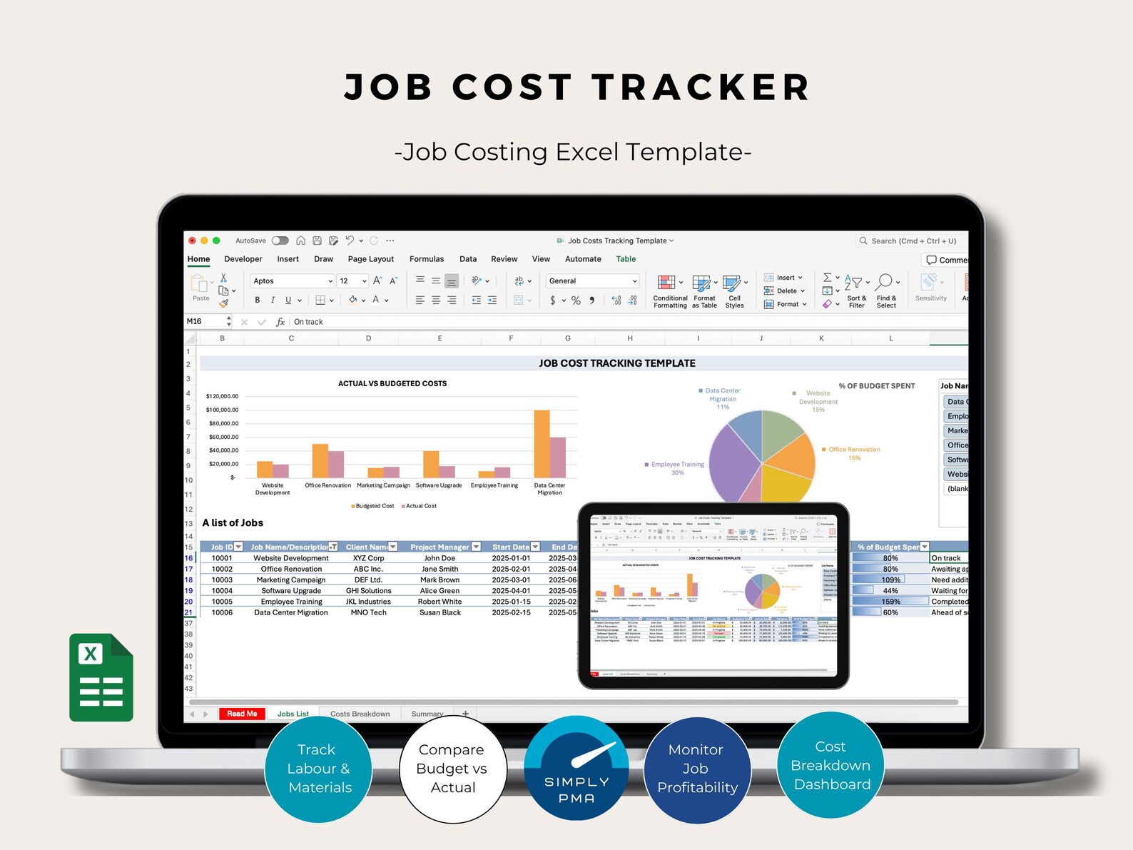 Job Costing Excel Template Bookkeeping Project Cost Tracker