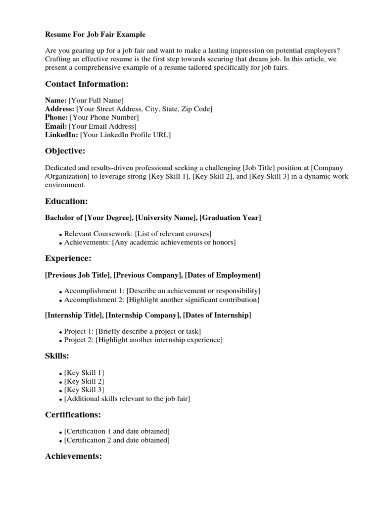 Resume For Job Fair ~ RESUMEEXAMPLEJOB