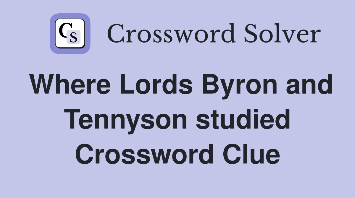 Where Lords Byron and Tennyson studied Crossword Clue Answers