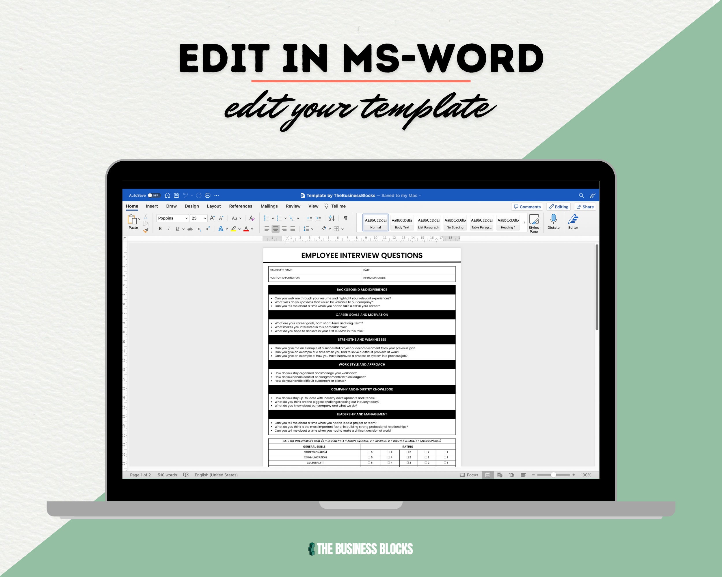 Job Interview Questions Template: Editable HR Guide (digital Download