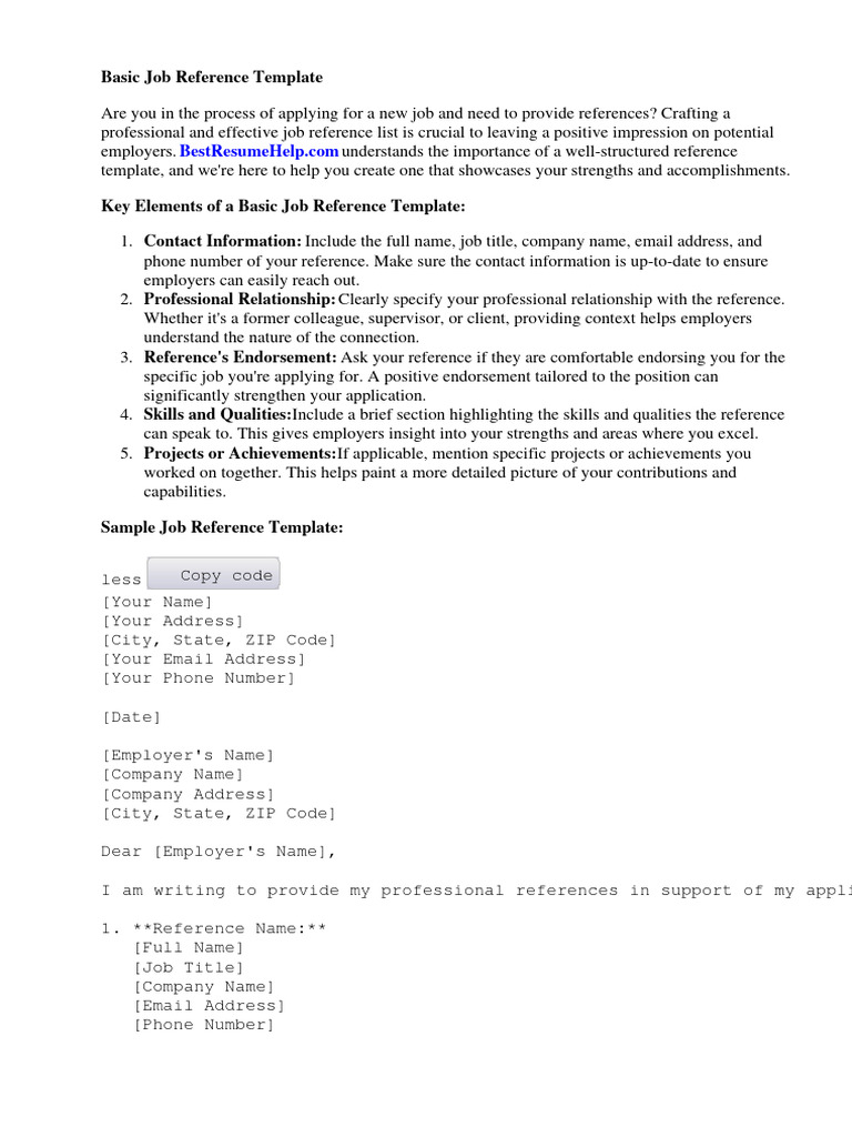 Basic Job Reference Template PDF