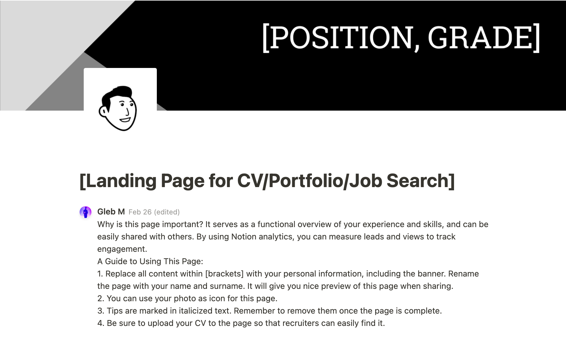 Landing Page for CV/Portfolio/Job Search Template Notion Marketplace