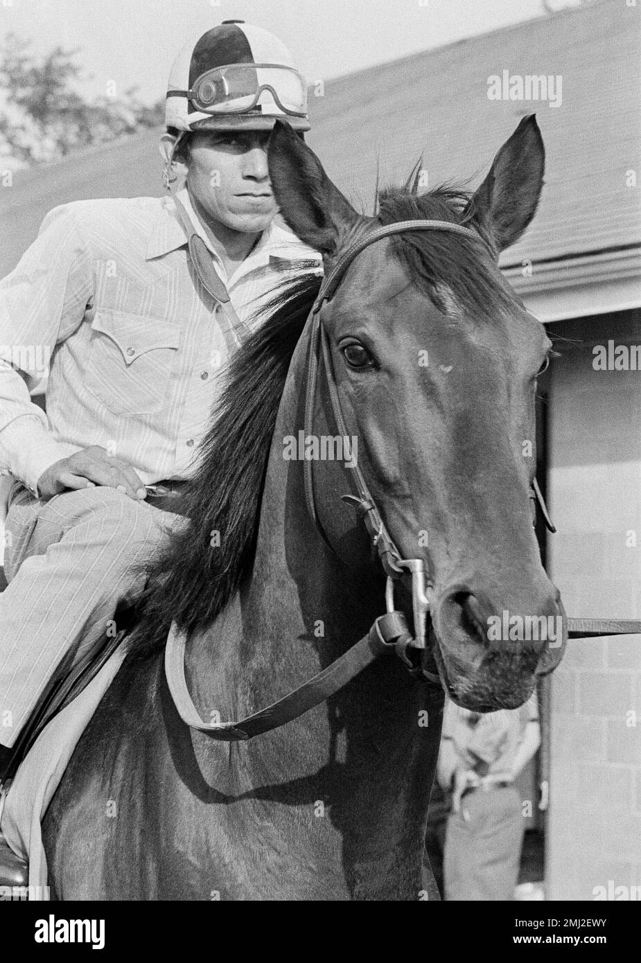 Jockey Angel Cordero stands in the stirrups May 4 1974 after his