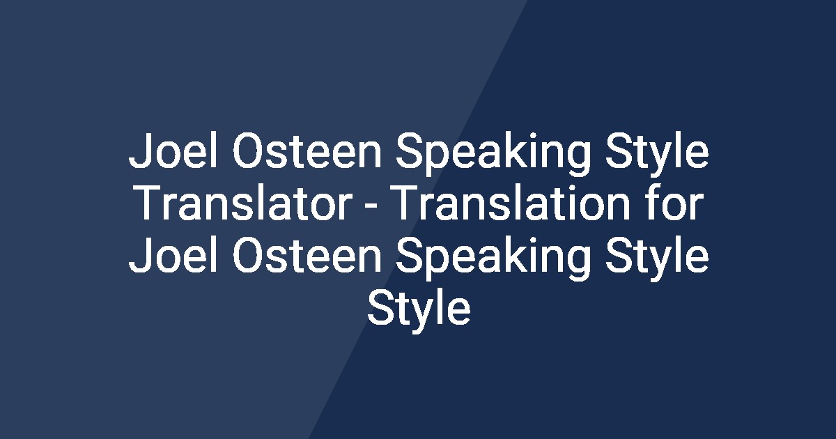 Joel Osteen Speaking Style Translator Translation for Joel Osteen