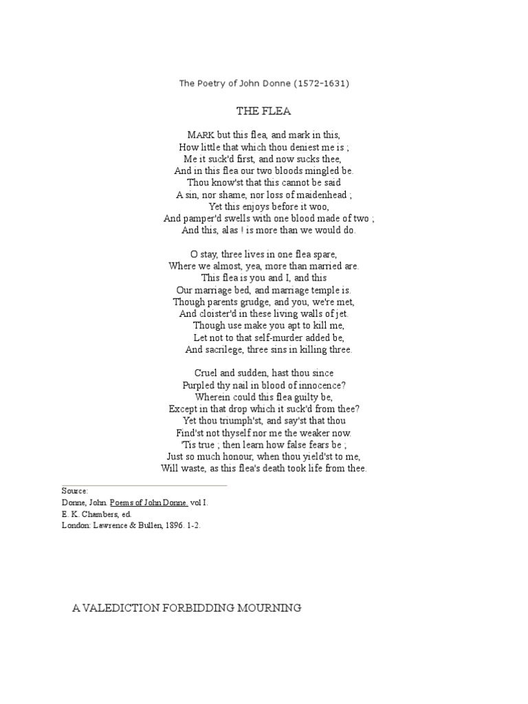 ENGLISH 251 Poem The Flea by John Donne pdf The Flea BY JOHN DONNE