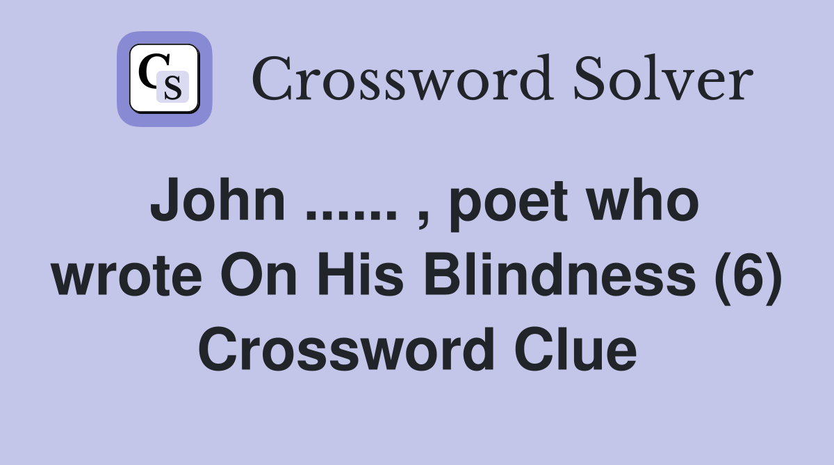 Here are some of the images for John Godfrey Poet Crossword that we found in our website database.