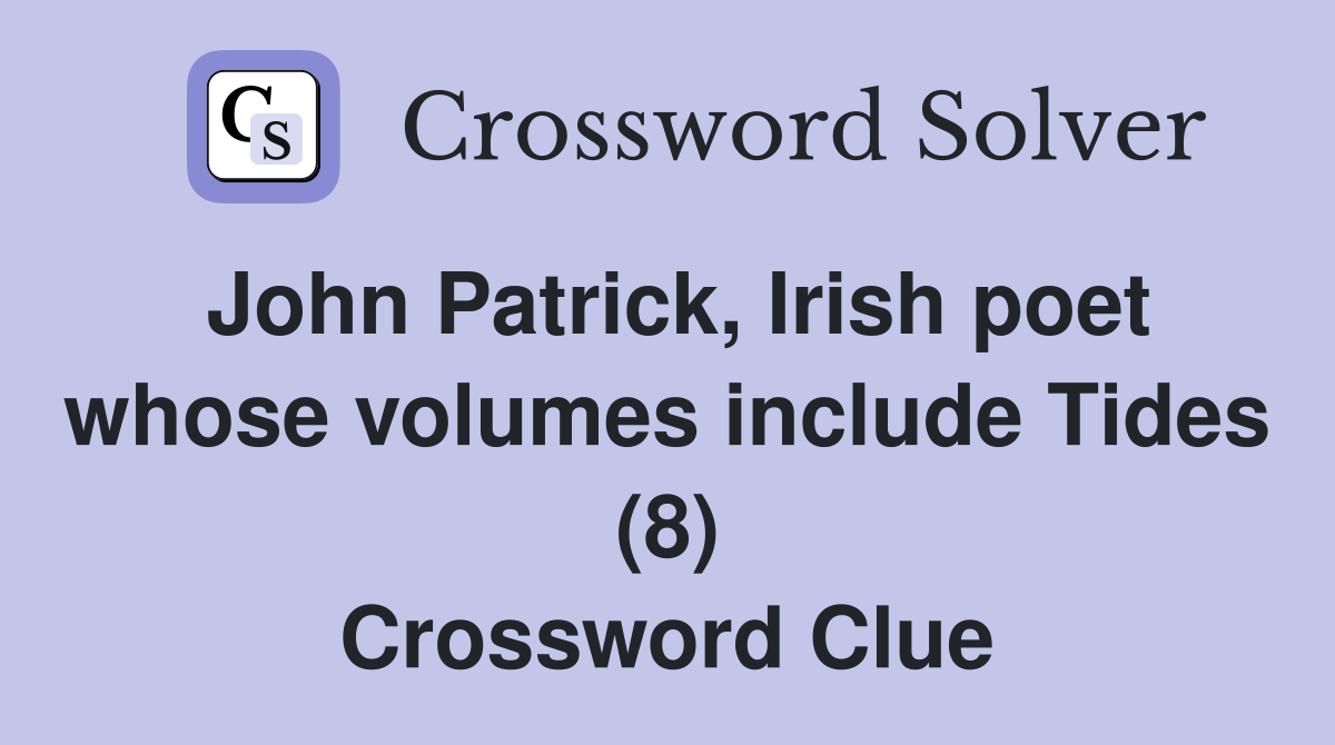 John Patrick Irish poet whose volumes include Tides (8) Crossword