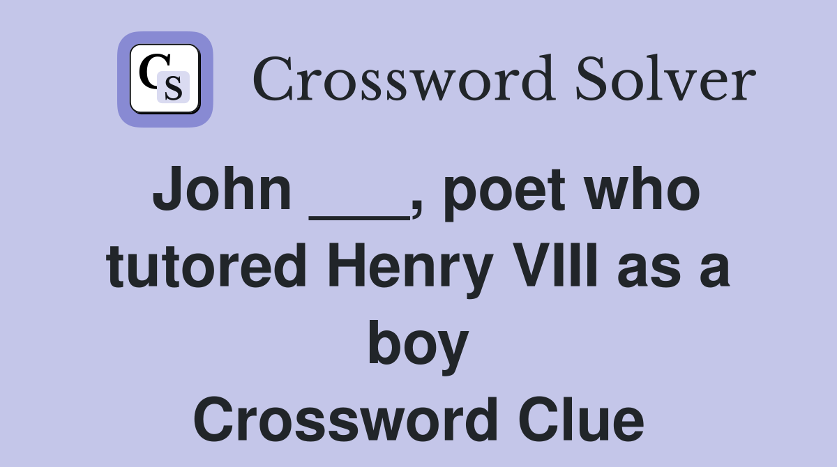 John poet who tutored Henry VIII as a boy Crossword Clue Answers