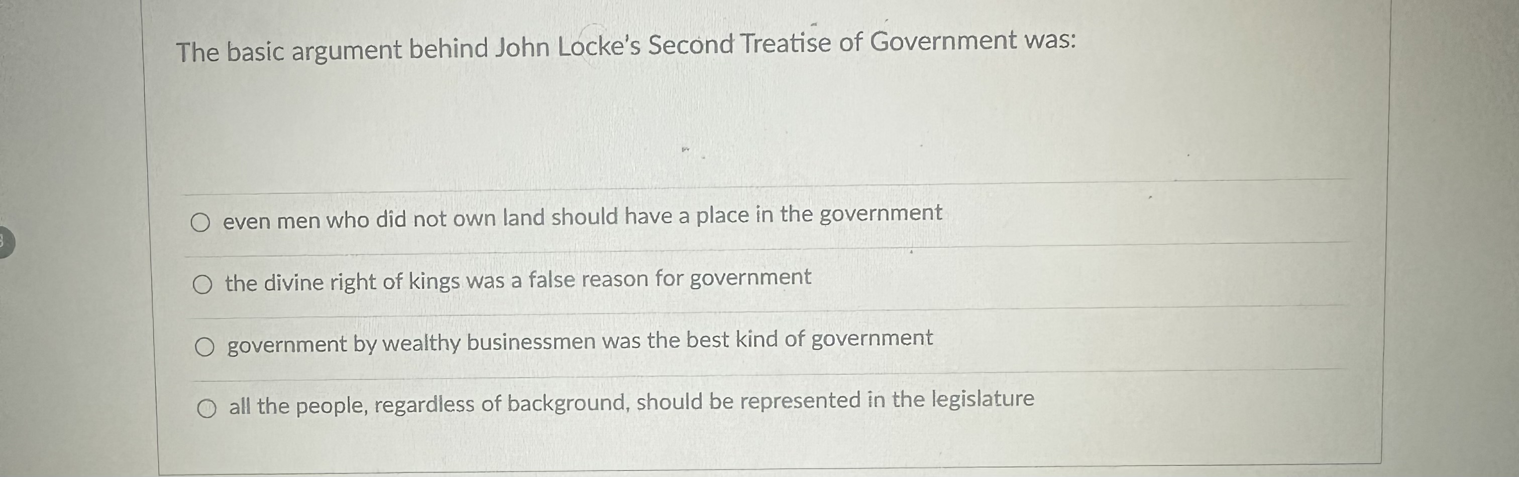 Solved In John Locke s Second Treatise of Civil Government Chegg com
