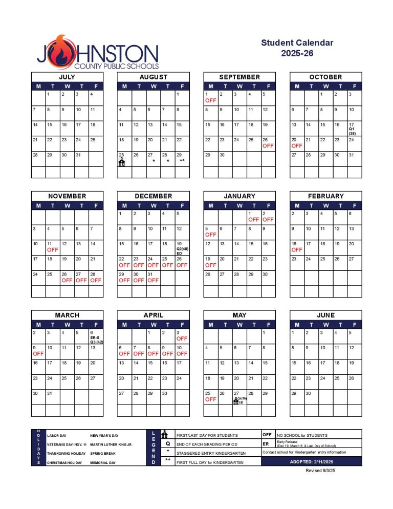 Johnston County Schools Calendar 2025 2026 in PDF School Calendar Info
