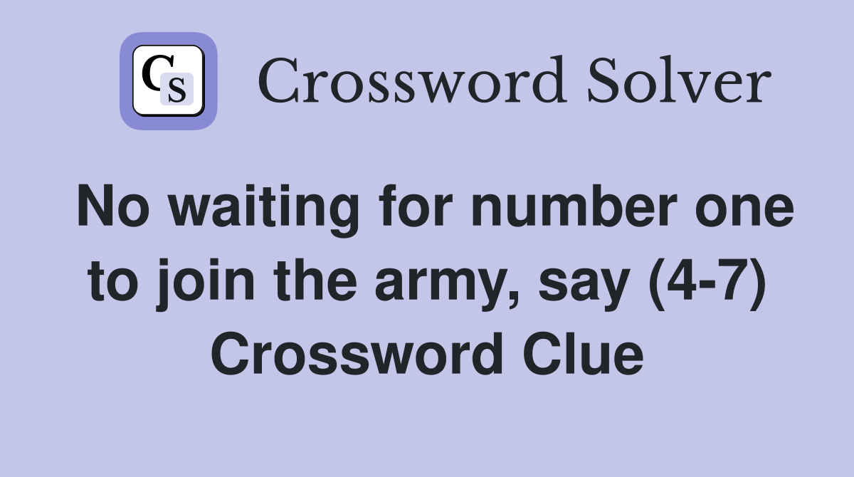 No waiting for number one to join the army say (4 7) Crossword Clue