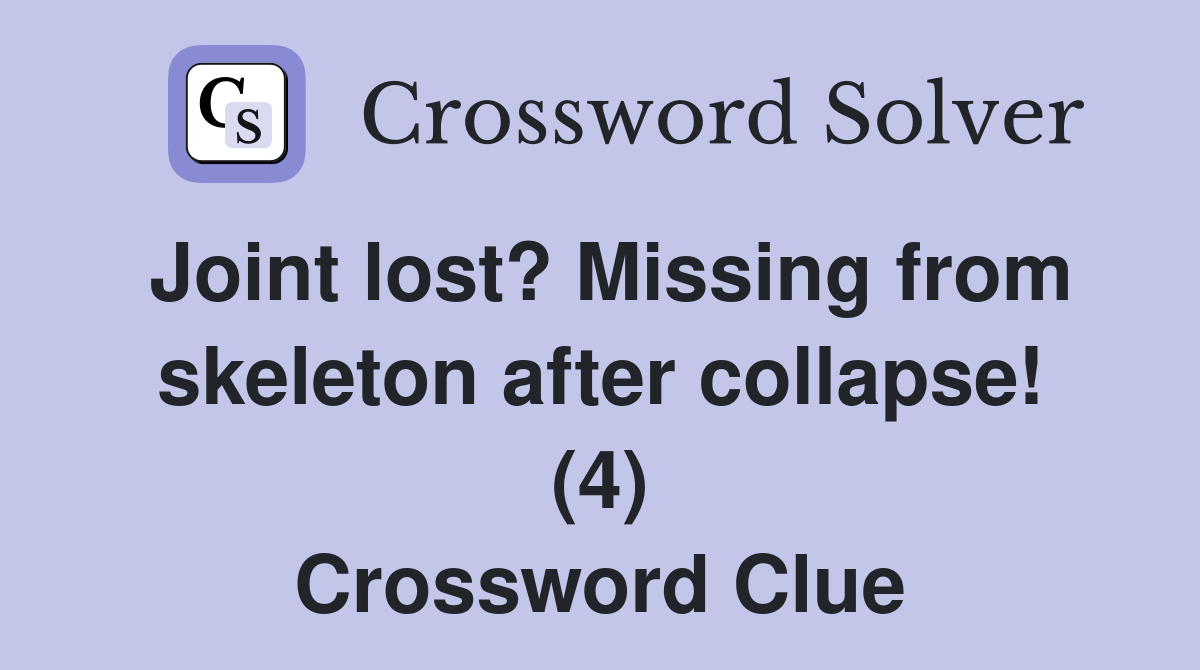 Joint lost? Missing from skeleton after collapse (4) Crossword Clue