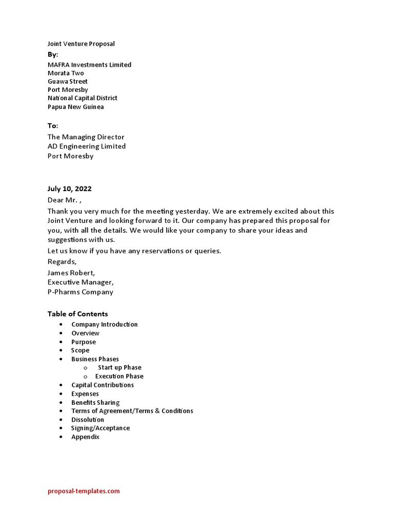 Joint Venture Proposal Template