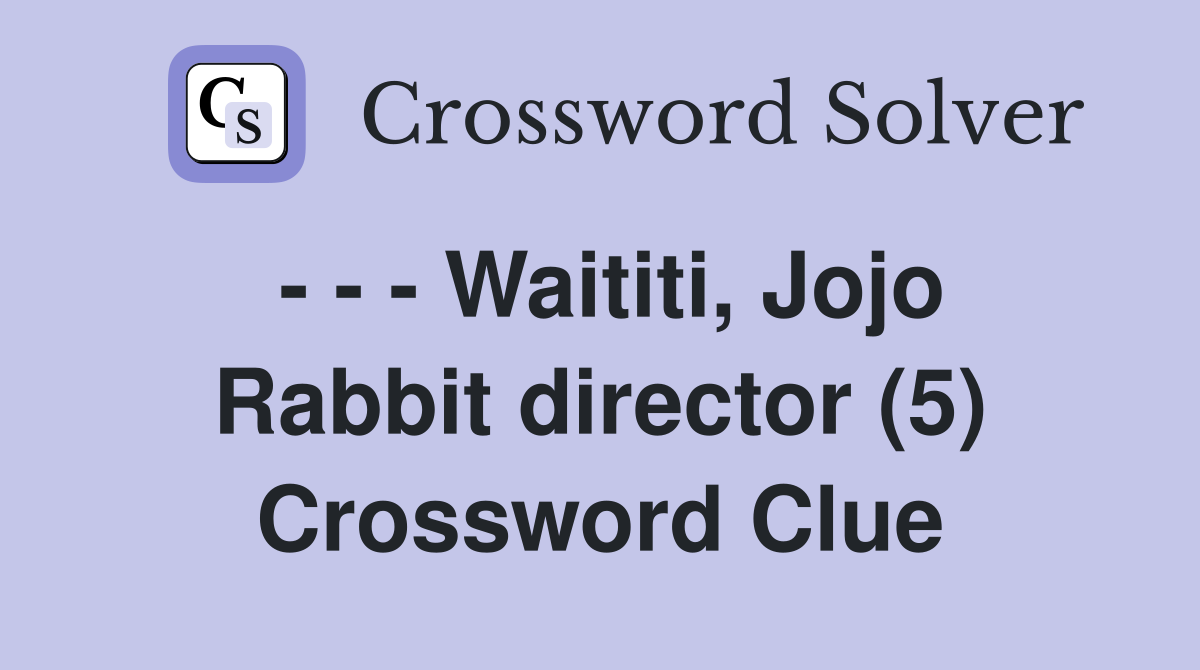 Waititi Jojo Rabbit director (5) Crossword Clue Answers Crossword