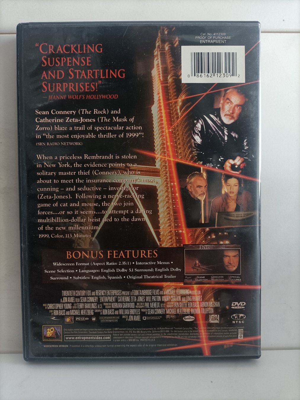 DVD Zone 1 USA Entrapment (uk) Sean Connery C Zeta Jones (Gebraucht